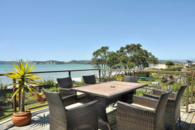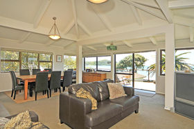Dream waterfront location with expansive uninterrupted Mercury Bay views. This concrete block and brick plastered home set over two levels featuring open plan living, opening out to sunny decks. The substantial home offers four bedrooms plus office, three bathrooms, all set on 835m2 with ample room to accommodate the boat, friends, and family.