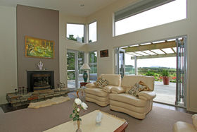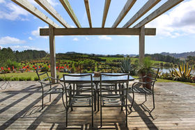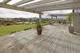 Huge entertainers deck with sweeping rural views and a glimpse of the sea.