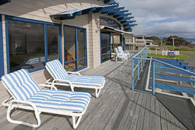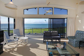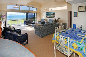The offering comprises of 3 separate areas. Upstairs you find the owners private quarters - 2 bedrooms, bathroom, and spacious living dining kitchen opening onto the large spacious north facing deck with all inspiring 180 degree coastal views.