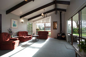 The three car garage provides for plenty of covered parking and the workshop offers further storage or a set space for those who want to tinker or have a workshop at home. The garage and workshop are connected to the home via a covered walkway. There is also a large gravel turning or outdoor parking area between the house and the garage.