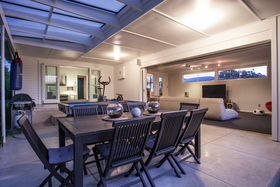 This contemporary family haven is tucked privately away in a desirable Hamilton location. Situated just 100 metres from Diocesan school and a few minutes' drive from the CBD, this 1950's home has been completely and tastefully renovated whilst still retaining some of its gorgeous original features. There are three large bedrooms (master with ensuite), a dining room, polished native timber floors, a formal lounge and a spacious family living area with internal sliders opening out onto a covered outdoor living area. The sleek, modern kitchen has plentiful storage and a breakfast bar. Large windows throughout and a light palette give the 249m2 home a fresh, airy ambiance. The children, their friends and visitors will love the in-ground, heated, saltwater swimming pool. It has a delightful water feature and plenty of space to relax on loungers beside it while the children swim. Set on a peaceful, fenced, level 1306m2, this property has established gardens and good off-street parking. The home has been built for the sun and has a double garage, ducted gas heating and oodles of appeal. Woodstock School is nearby, as is St Joseph's Catholic School and Fairfield Primary, Intermediate and College.