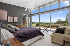 Floor-to-ceiling windows showcase the home's northern aspect to maximum effect throughout, allowing you, your family and guests to wake daily to panoramic vistas of rolling pastures and an inviting 20 metre lap pool which juts out into the lush landscape. A spacious, covered outdoor entertaining area is also superbly appointed for leisurely lunches and evening soirees and really sets off the beautiful home.