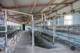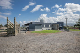 The all flat contour has a central race which feeds to 26 even paddocks. The dairy shed has 11 sets of cups and an in-shed meal feeding system with a 16 tonne silo adjacent.