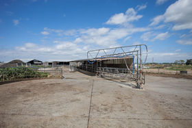 Adjacent to the dairy shed is a 270 cow concrete feed pad with associated bunkers and supplementary feed pads nearby.
