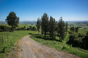 The contour is a good mix of gentle rolling to medium hill with some areas a little steeper. Most steep terrain is fenced with bush lots or new plantings of gums and manuka with honey bees as a future option.