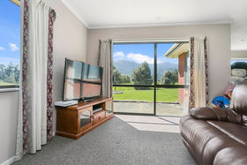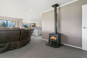 The home has two levels. The master bedroom could be either up or down. Large open plan living with spacious dining and lounge areas are adjacent to a modern kitchen. A free-standing log fire provides winter warmth. Two bedrooms, a bathroom and the laundry are on the lower level with two bedrooms and a second bathroom on the upper level. A double garage is adjacent to the house with the lawns being very easy care.