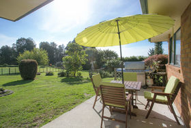 The dining room flows easily from the kitchen to the well-proportioned, open-plan living area, and three double bedrooms all with inbuilt storage. The master suite offers ensuite and generous wardrobe space. The well-established gardens and specimen trees have been well cared for, and offer a low-maintenance framework to the rolling lawns, perfect for a game of backyard cricket.