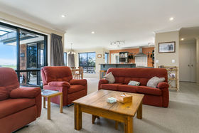 The commitment to year-round outdoor living is clear. The large north-facing deck is easily accessed through one of four external doors to this entertaining enclave. This area is a dream, with absolute privacy, well sheltered and spectacular views, all covered with a large archgola roof. It's not hard to imagine enjoying time spent here with friends and family all summer. This home is full of features: Solid brick construction, underfloor heating, heat transfer system, fly screens, security stays, LED lighting and a spa pool to name a few.