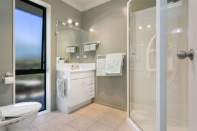 The welcoming entrance leads you to the generous family room with the open plan dining area and socially positioned kitchen adjacent. Privately positioned you will find the master suite, complete with ensuite and walk in robe with sliding doors to a sunny private spa pool deck. The second living room offers practical options for families and provides thoughtful separation for possible BandB guests. Two extra large-double bedrooms, each with their own ensuite and doors to their own private deck, combine with the second living room for guests to relax in. This separate wing is equally perfect for extended family seeking exclusive privacy or a kids wing.