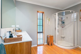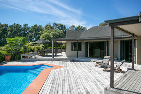 An absolute stand out feature is the large family home of impeccable quality that resides at the entrance to the property. It is carved into a landscaped environment with indoor-outdoor living completing the harmony, which is further enhanced by a heated swimming pool, spa pool and barbecue area. Interiors deliver two separate living options, an office and four bedrooms, with a bathroom including a full master suite that opens to the deck and pool area. Three heat pumps and a gas fire cater for winter comfort.