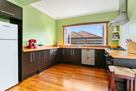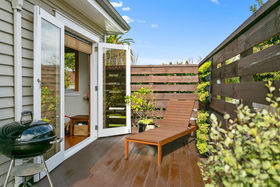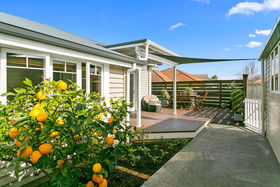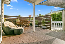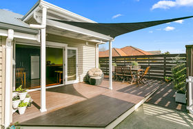 The warm and immaculate presentation instantly invites you via an ornate porch, to step indoors and enjoy the atmosphere. Neutral tones and the open plan layout of the kitchen, dining and living gives a great sense of space and proportion. French doors flow seamlessly from the dining and living areas to a private and sunny wrap around deck whilst the kitchen enjoys stacker servery windows, encouraging social occasions in the warmer months ahead.