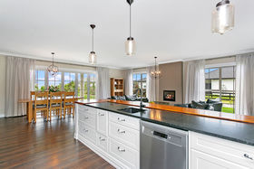 The big open plan living with the kitchen as the hub is perfect for entertaining, you can be amongst your guests while you prepare food of drinks, while the scullery complete with dishwasher and sink keeps what you don't need seen out of sight, this area has a gas fire for ambiance in the winter, and opens through bi-folding doors to a private covered patio, for relaxing and entertaining. A separate lounge for the TV watchers or read a book on the sunny window seat.