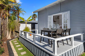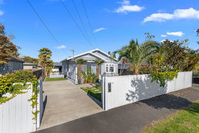 Set in highly sought-after Hamilton East, a captivating 1920's bungalow sits graciously, framed by lush tropical greens and privately positioned from the roadside. Renovated to a high standard while maintaining the unique characteristics of the original home, including ceiling detailing and native timber flooring which beautifully complements the restored weatherboard exterior.