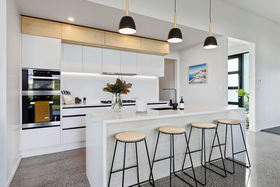 Immaculately presented with a timeless neutral decor, on offer are four double bedrooms, an office and two living areas. The chic kitchen features stone bench tops, Miele appliances in a layout catering for everyone's needs. The open plan kitchen and dining offers an unrivalled sense of space that follows seamlessly past a schist wall with a double-sided Escea gas fire opening to the media room. The quality build, attention to detail and high spec fit out are immediately apparent. A tonne of storage is available in this generously sized home. A dedicated laundry and double car internal access garage complete the package of this exceptional home.