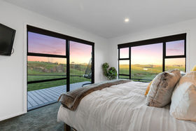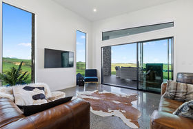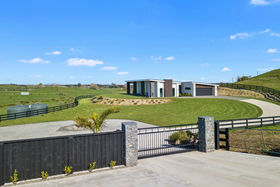 Nestled amongst the rolling green pastures of Horsham Downs North, this sleek two year old home is designed for family and entertaining. The generously sized masterpiece has been built to the highest standards by JCB Builders, maximising a rural vista second to none. The moment you drive through the electric gates you will be taken back by the impressive design that unfolds before you. A giant entrance door welcomes you to a four-metre-high ceiling with a surfeit of glass encompassing the rural Waikato views.