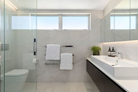 A clever floor plan means that three or four bedrooms are available to you, depending on your preference. Currently enjoyed as a media room, the guest bedroom is privately positioned and enjoys its own courtyard. Each bedroom offers a spacious layout and inbuilt storage. The master retreat is positioned in its own wing, and offers an escape from day to day reality, the modern en-suite and walk-in-robe complete this idyllic picture.