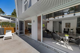 Tucked away down a private driveway, a sense of calm and tranquillity are undeniable on arrival. Step inside and the over-height, light-filled living spaces welcome you. An expansive open-plan family zone forms the hub from which the 250sqm (more or less) home unfolds. The kitchen is well-considered with substantial bench space, storage options and a nod to the timeless design of the home. Perfectly positioned adjacent to dedicated outdoor dining areas, indoor dining space and with a direct view to the outdoor area and independently fenced pool area.