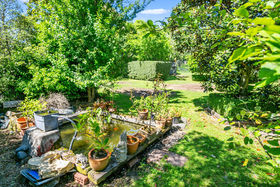 The traditional kitchen is crisp and clean in white with both stainless steel and timber worksurfaces and views to the deck. Step outside and be greeted by the hidden garden oasis, supremely private with lush organic gardens featuring topiarised hedges and shrubs. There's a pond with resident turtle, fruit trees and native bird life. The large covered deck offers all weather living and dining or simply a nice spot from which to enjoy the garden ambience.