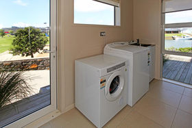 There is spacious decking on both levels plus a warm sunny private courtyard perfect for barbecues, sunbathing or just getting away from it all. A private boat ramp, room for a pontoon, large drive through garaging and many more features make this a compelling package that deserves immediate attention.