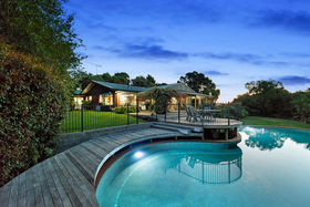 * a 1970's build brick home with 3 large bedrooms, 2 bathrooms and a seperate room for a private spa, galley kitchen, 2 lounges, an office and exercise room surrounded on the northern side by timber decks overlooking the 70,000 litre salt water swimming pool and landscaped gardens.