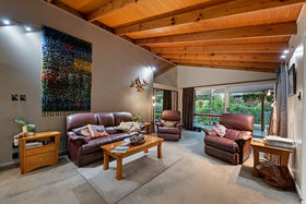 * a 2000's build Versatile home with 3 bedrooms, lounge, kitchen and bathroom also featuring north facing decks, a private yard area and views to the south of Pirongia.